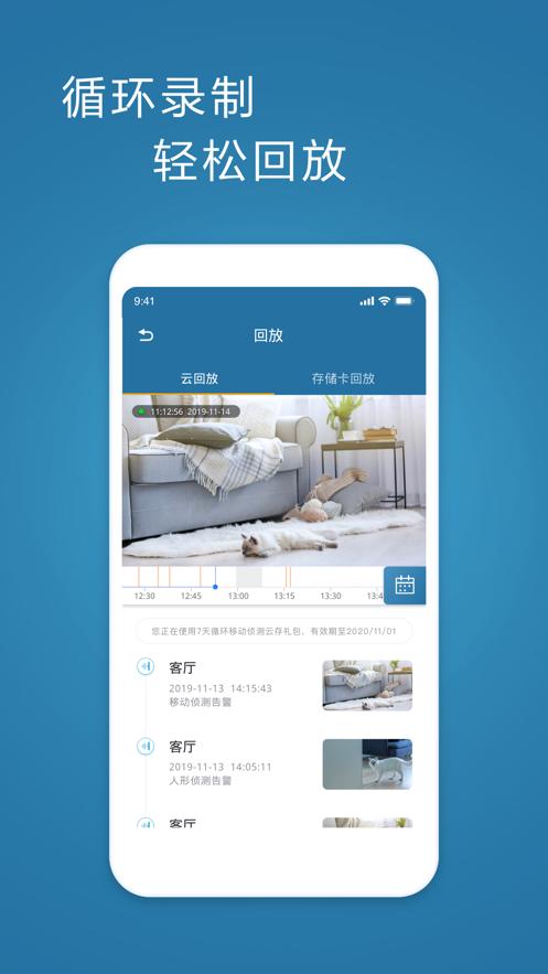 还可以实时看顾家里小孩,进行语音聊天,观看您家喵星人、汪星人的动态,以防他们拆家。