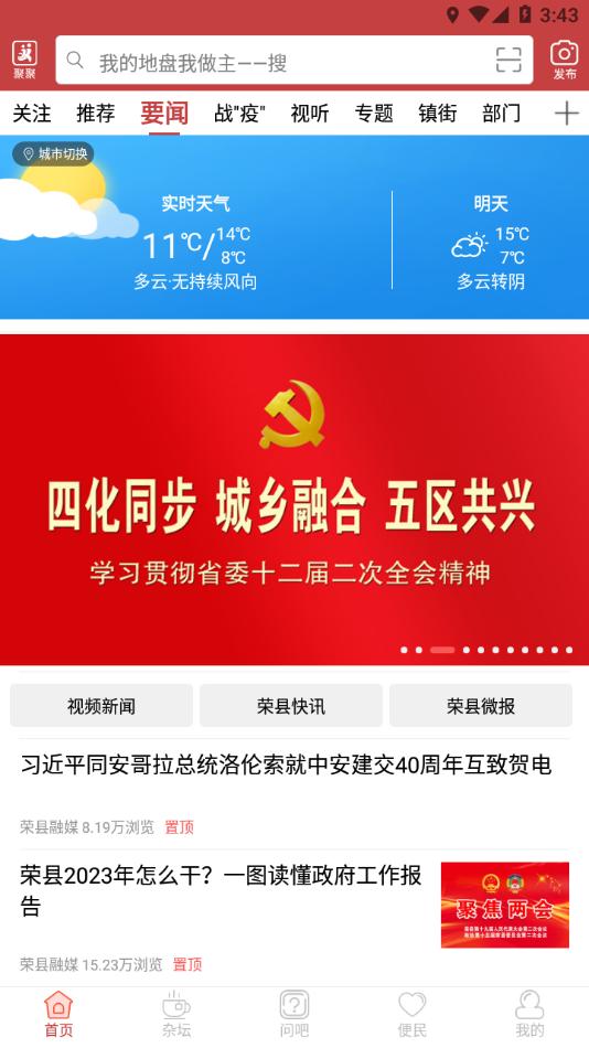 悦度荣县app是专为荣县制作的融媒体移动平台,平台拥有新闻资讯,杂谈,问吧,便民等等功能内容,可以帮助更好的引导及服务荣县。