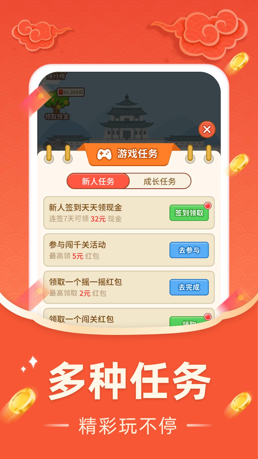 【答题赚--躺着赚钱】在这里玩家不仅能体会到精彩好玩的闯关乐趣,还有丰厚的红包奖励等你来领,答题闯关就可获取红包奖励,让玩家能一边学知识,还能领取各种红包奖励,喜欢的朋友快来下载吧~