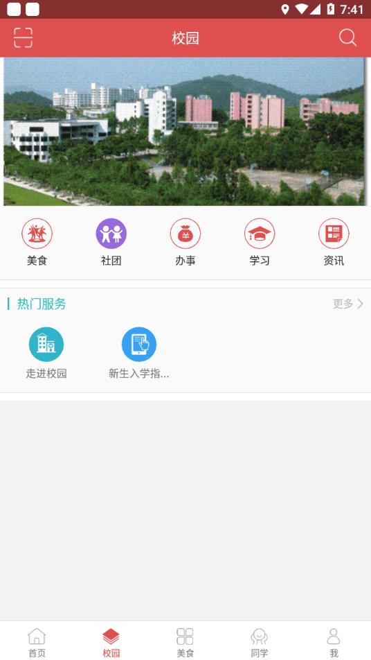 主要包括:财务缴费、点餐、在线咨询、地图、来校确认、校园资讯、通知公告...等各类服务。