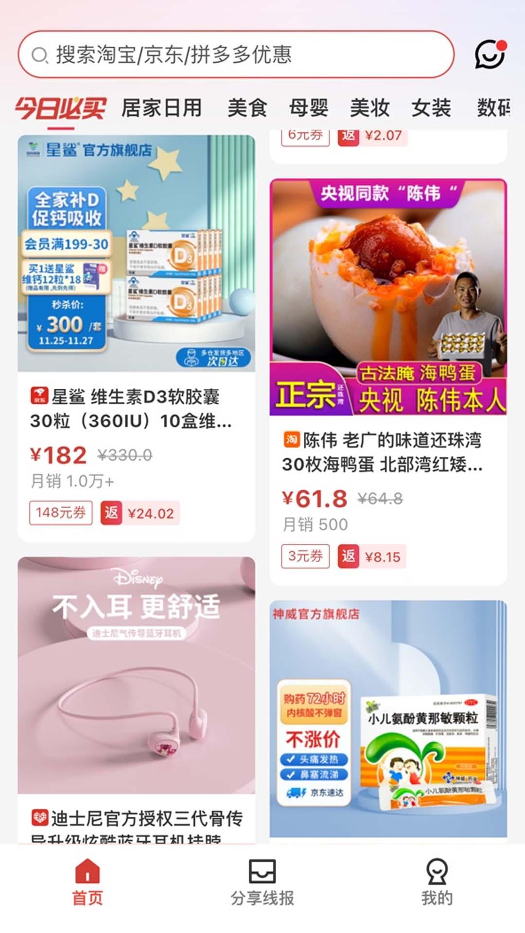 3、自己购物,轻松省钱 优选全网低价好物,还能帮你查询优惠券和返利,轻点几下,不花冤枉钱。