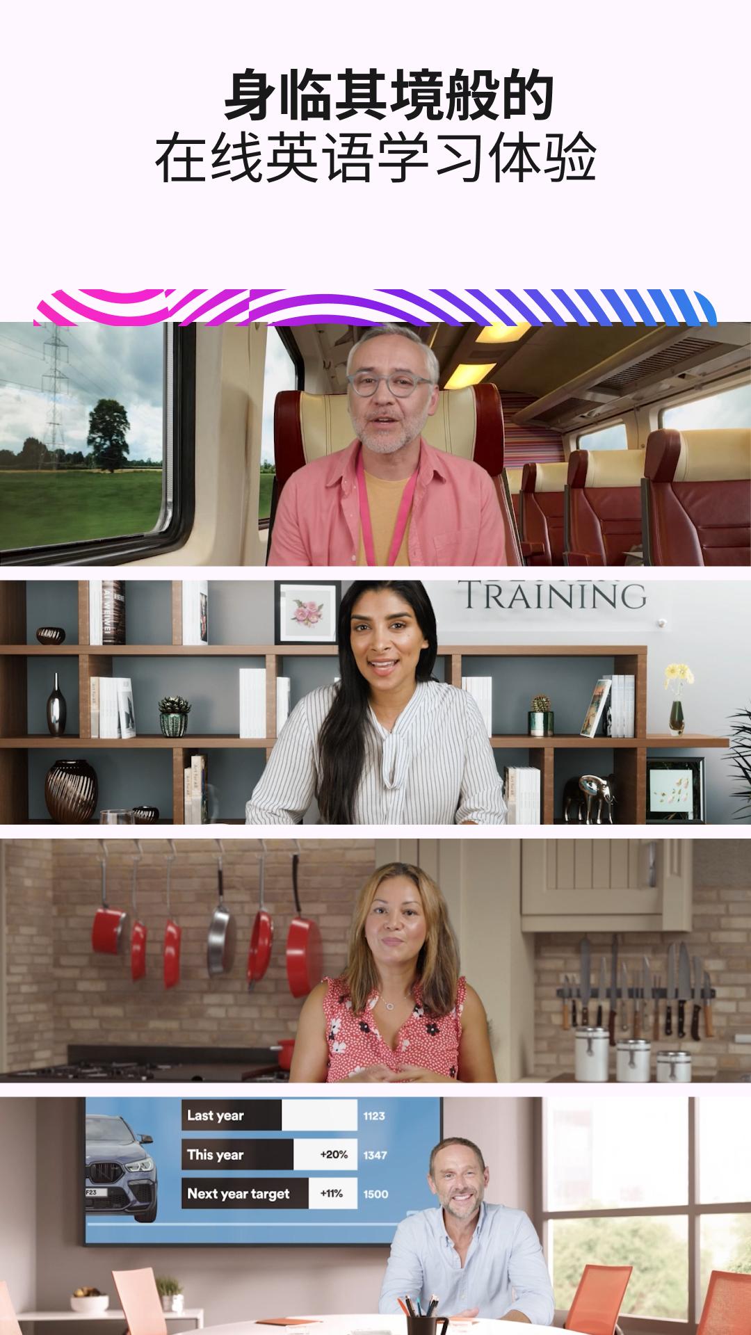 作为在线私人会话课和在线互动课堂的补充,你可随时随地学习超过2000个小时的多媒体课程