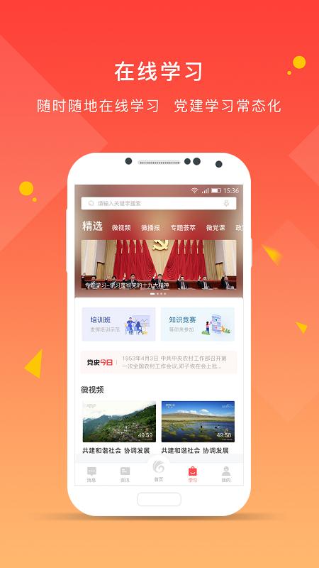 2.学习教育:括党教视频、学习计划两个栏目,为党员群众提供丰富多样的学习资源