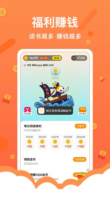 金币福利功领不停,看着小说赚零花!