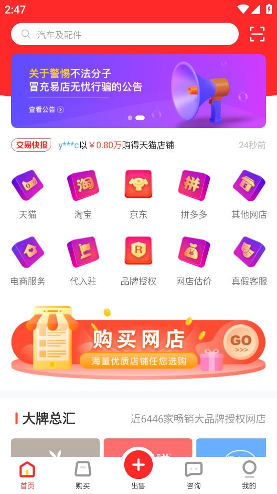 易店无忧app是一款手机线上网店开设、交易服务应用软件,可以帮助用户进行店铺的入驻和管理网店,非常方便。该软件汇集了全球电商市场优质店铺资源,提供了专业高效的网店估价、交易、过户以及品牌授权、商城代入驻等服务,实现买卖双方信息共享,提高网店交易质量。同时,该如何还获得安全联盟、认证联盟等权威认证,用户可放心进行使用,这里不仅拥有线下交易陪同专属服务,而且可以帮助用户对店铺进行合理的分类,以及成交情况的分析,还可以随时评估转让,交易效率非常高,欢迎有需要的用户下载使用。