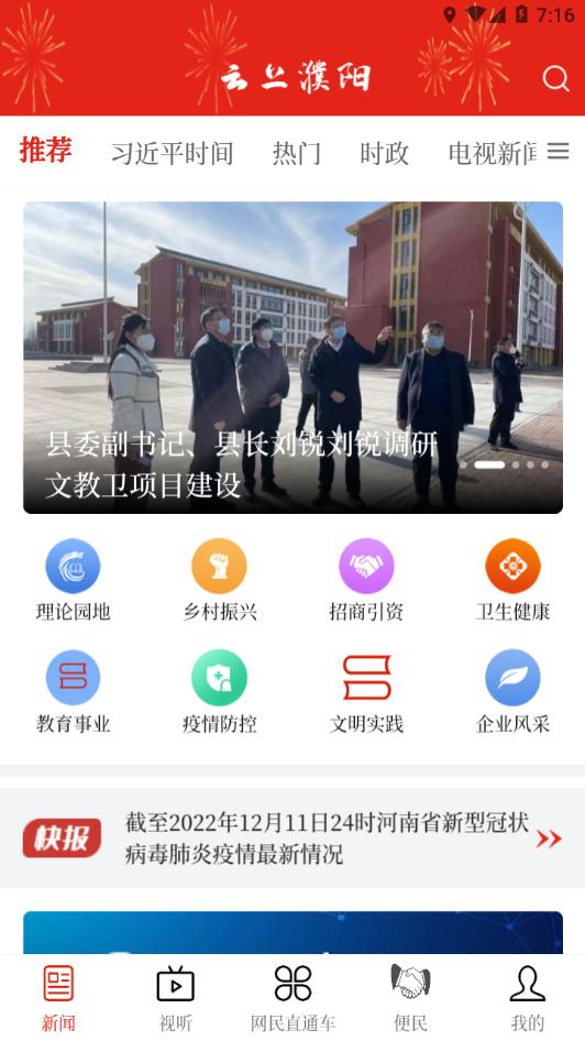 云上濮阳APP围绕“新闻+信息+服务”的理念,涵盖新闻、视频、直播、微社区、问政、便民服务、大数据新闻等多个板块,是传播中央声音的重要阵地。