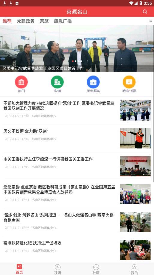 茶源名山app是一款为名山当地的用户打造的线上各方面融媒体资讯平台,用户可以在平台上轻松掌握最新的政务资讯,还能在手机上随时随地查看当地的电视直播节目,是用户了解当地新闻资讯的重要平台。