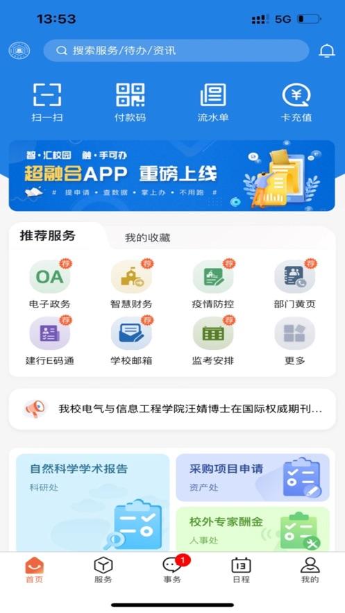安徽工业大学超级APP功能主要包括一卡通消费、财务查询、报修等日常师生服务,未来努力打造一个满足全校师生生活、学习的一体化校园服务平台。