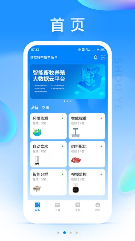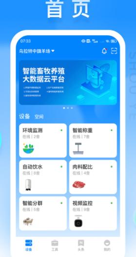 【首页】:智能化设备监测、预警、智能控制联动,实时了解养殖场数字化信息。