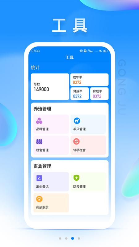 【工具】:品种管理、羊只管理、栏舍管理、出生登记、防疫管理、性能测定,为养殖企业提供高效数字化工具。