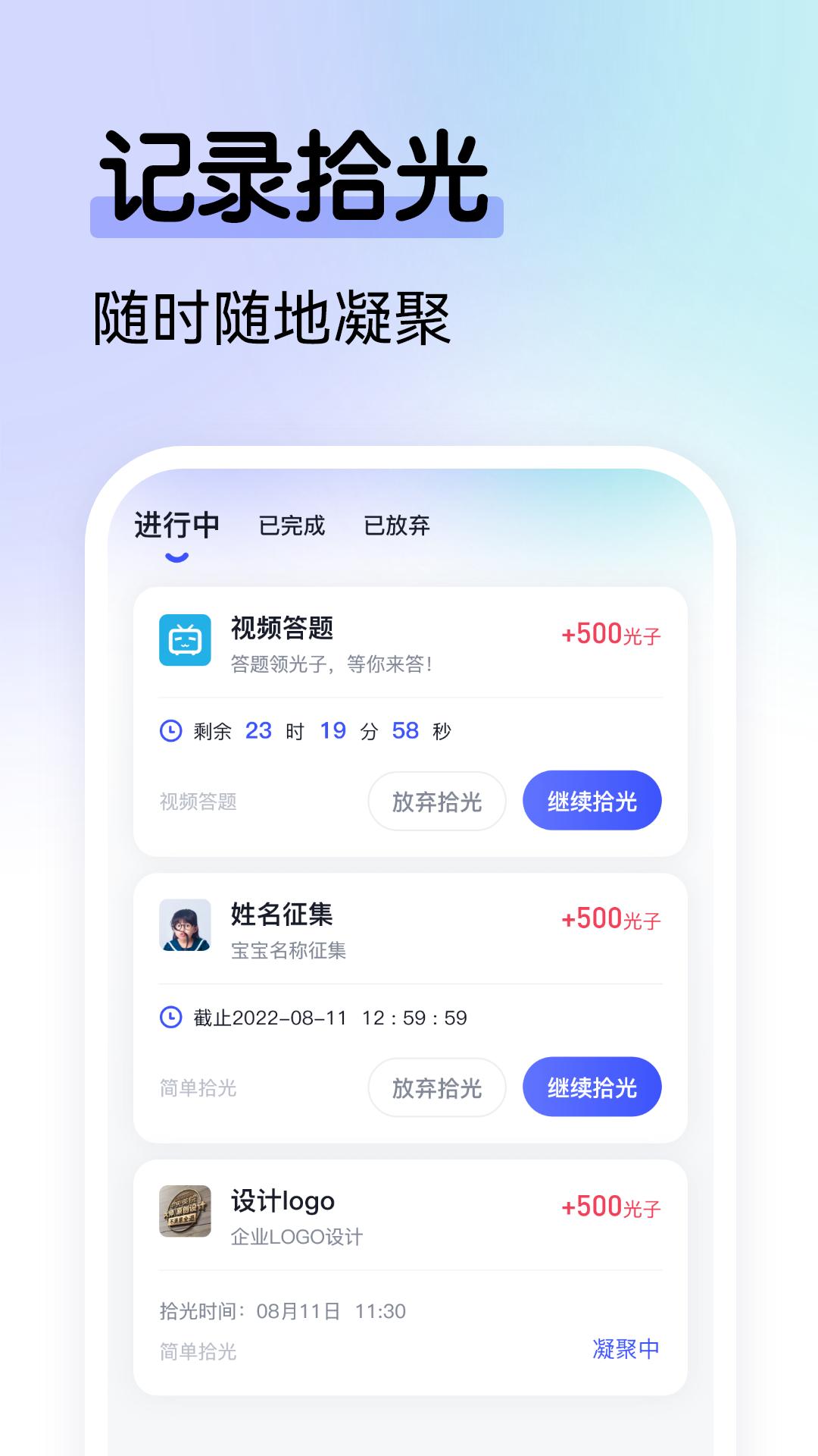 【每日拾光,简单好做】每天推送简单好做的拾光任务,完成拾光,即可凝聚光子