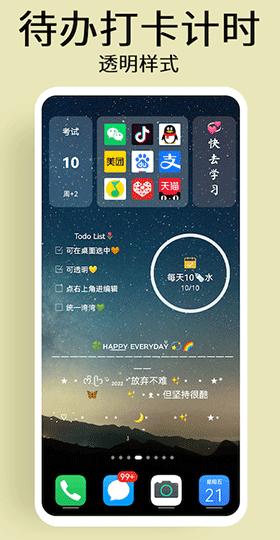 1、一个强大的自定义小组件工具。支持多种尺寸的小组件,提供多种风格的桌面小组件样式
