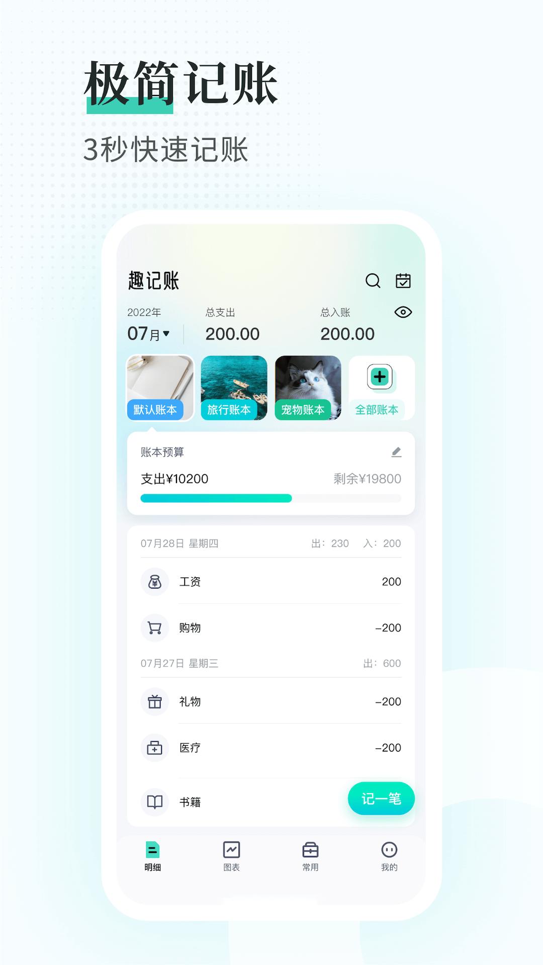 趣记账app下载安装是一款十分不错的记账软件,用户可以一键记录收支,自动生成收支报告,帮你合理安排收支情况,告别月月光,有需要的用户可以下载试试看吧
