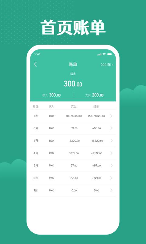 本月及每日收入支出等详细账单,让你了解每天的生活规划