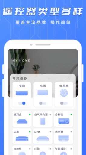 支持遥控空调、电视机、机顶盒、投影仪、电风扇、DVD、音响、互联网盒子等多种家电。