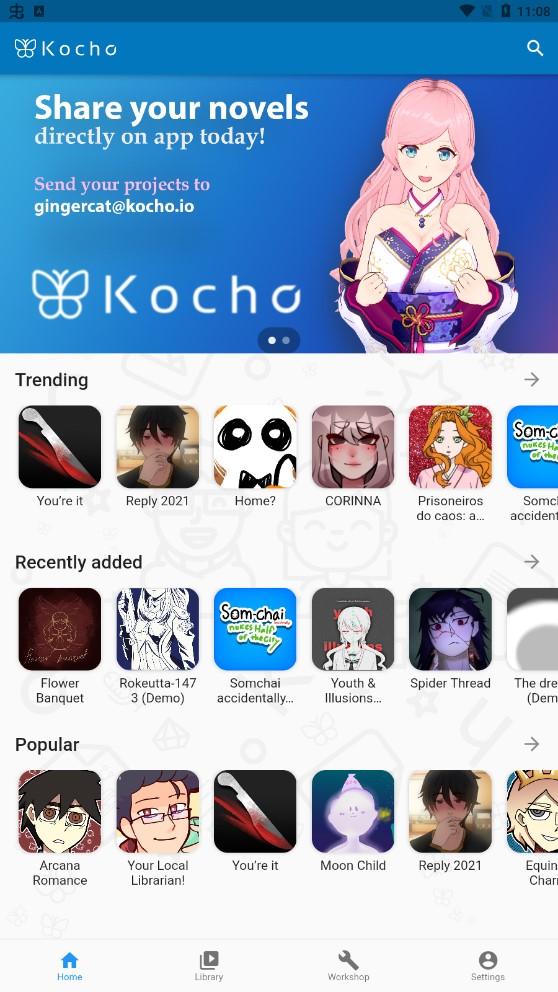 Kocho是一个免费的离线视觉小说制作者和玩家,让您可以轻松地玩、创建和分享自己的视觉小说游戏。
