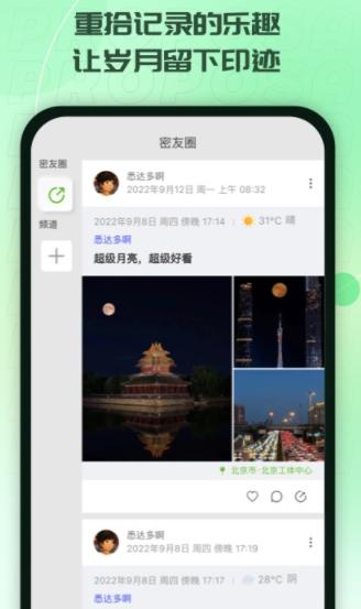 以密友间分享日常为主,也可仅供自己或某好友可见。