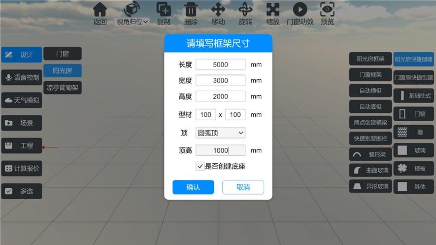 可自由设计各种门窗、阳光房、别墅、凉亭、葡萄架车棚等各种3D效果图