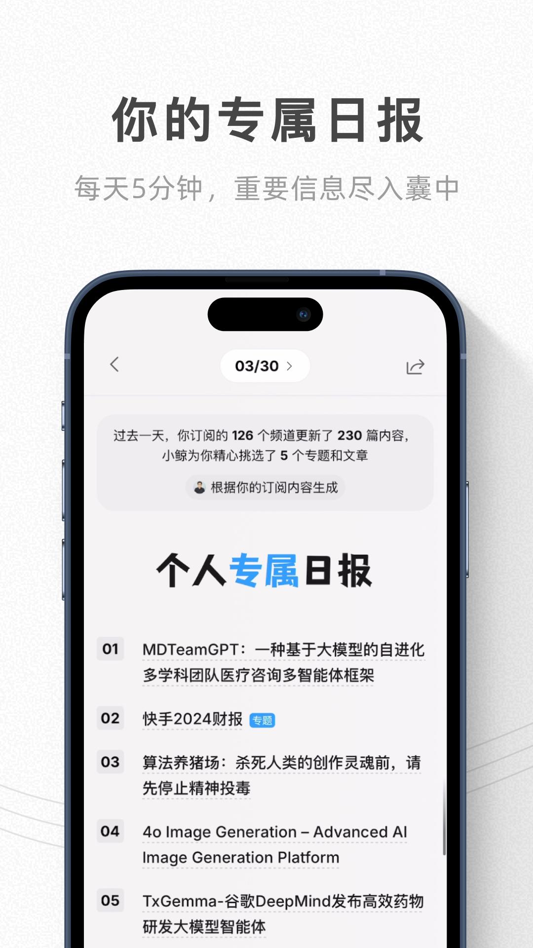 语鲸,订阅、聚合、总结你关心的信息,希望成为信息爆炸时代让你10倍提效的个性化信息助手。