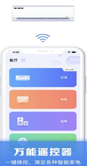 手机遥控空调、电视、机顶盒,安装包内置80000+离线遥控器码库,没有网络也能玩!适配各个品牌旗下的手机,安装APP即可变身手机家电遥控器,用手机遥控电视、机顶盒、空调等!五千万用户推荐的手机遥控器软件,把空调、电视、机顶盒遥控器统统装进手机!