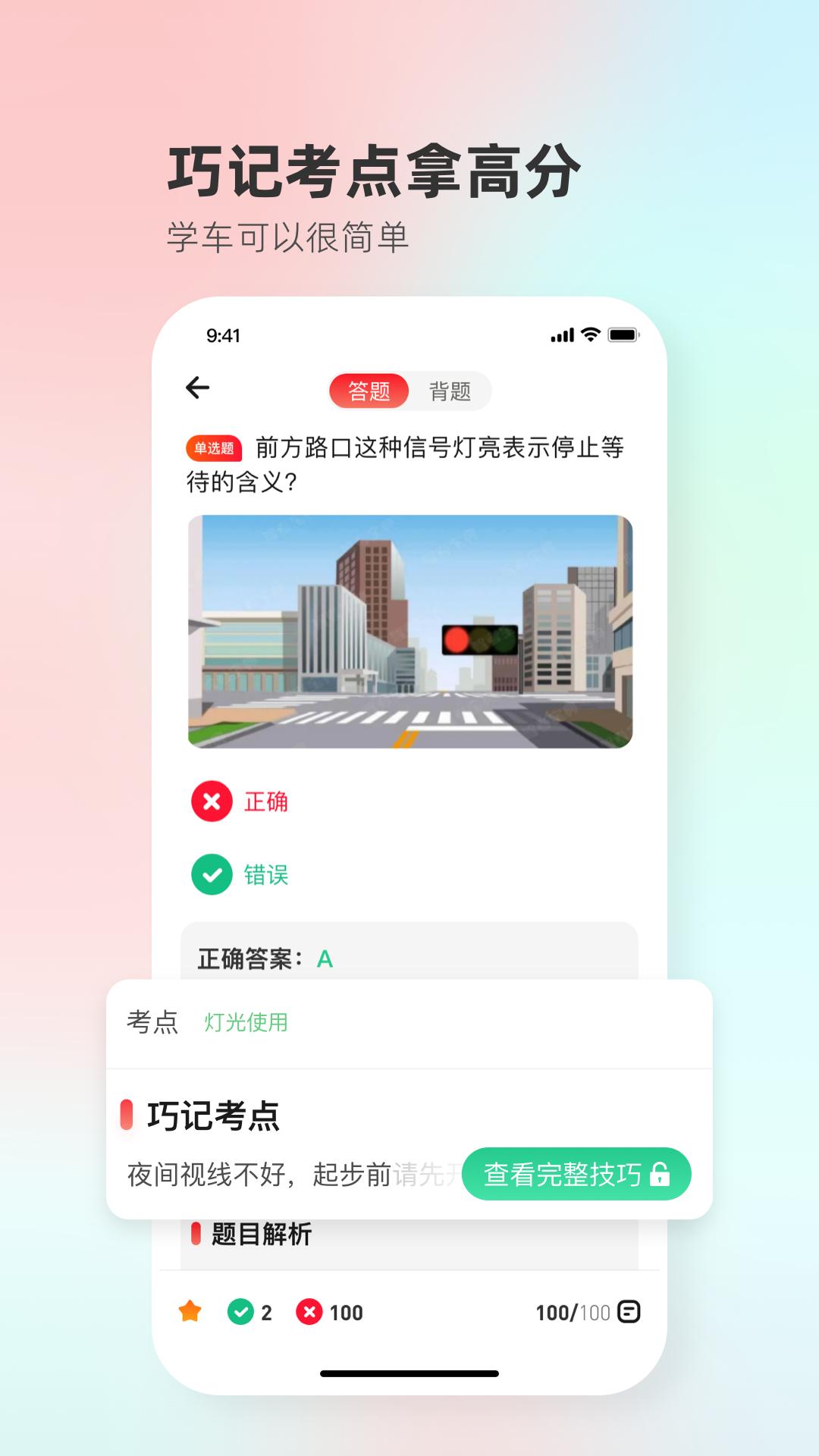 提供小车、货车、客车、摩托车等全车型考试题库,覆盖完整学车流程,从报名到考试,一路顺利拿证,堪称保姆式驾考服务体验。邀请资深驾驶员培训专家深度剖析交规讲解驾照考试技巧,通过科学有效学习方法,助力学员快速通过驾照理论考试,顺利拿驾照。