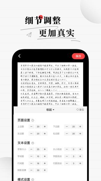 【参数调整】除了行间距,字间距等基础的调整外,我们还提供了调整大小间距、字间距、行间距的波动,更好的模拟了真人的写字习惯!还有特殊的阴影效果处理,让最后的结果自然逼真!