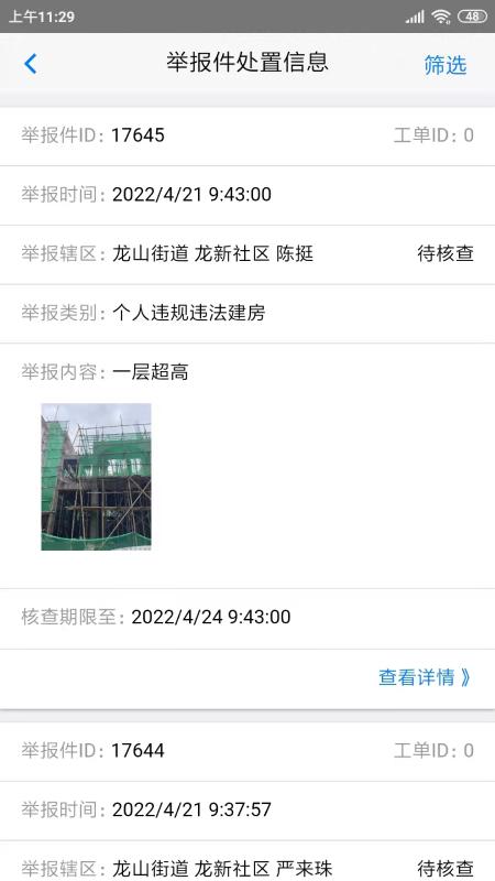 1、主要有发起举报、核查举报、违建工单生成、受理