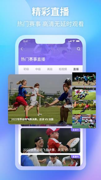飞盘app下载是一款由长沙高乐教育科技有限公司推出的飞盘运动资讯软件,软件内拥有非常全面的飞盘运动资讯,各种游戏规则详情和运动视频,精彩比赛瞬间,都能在这里查看,还有比赛直播能供用户观看。