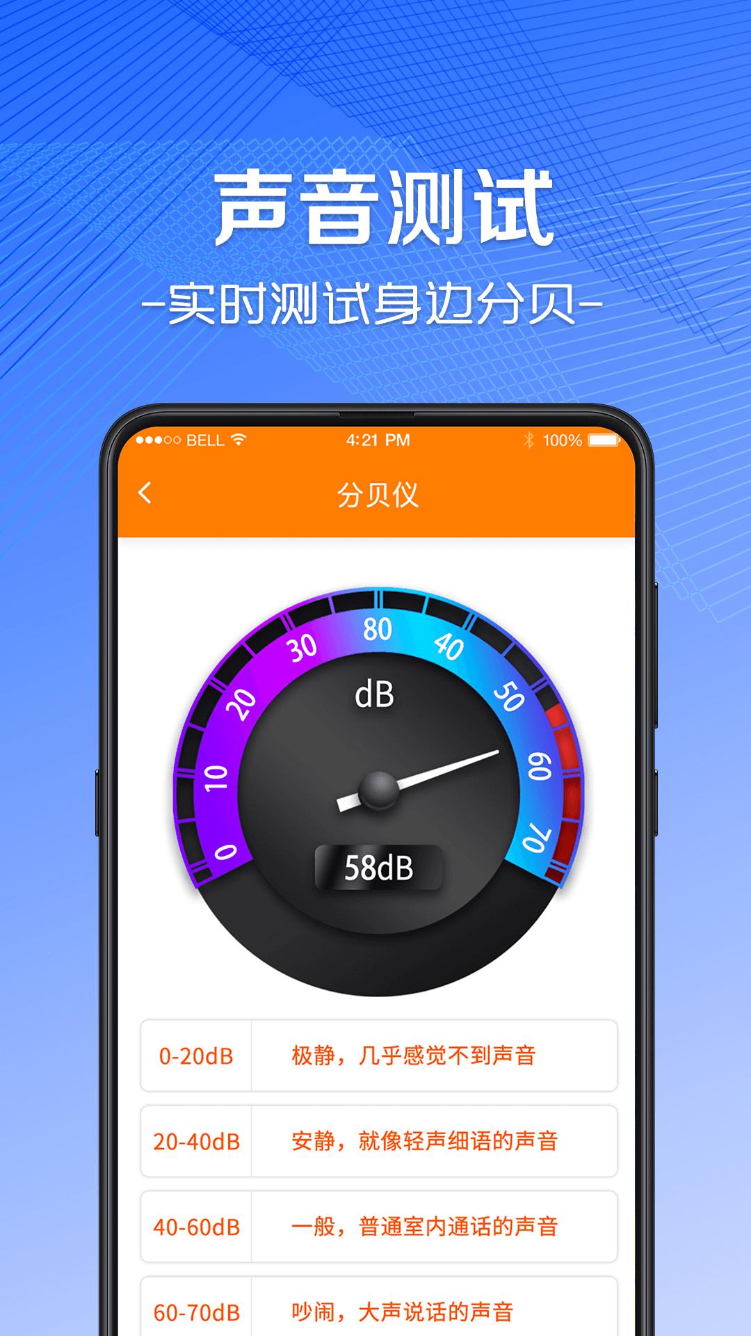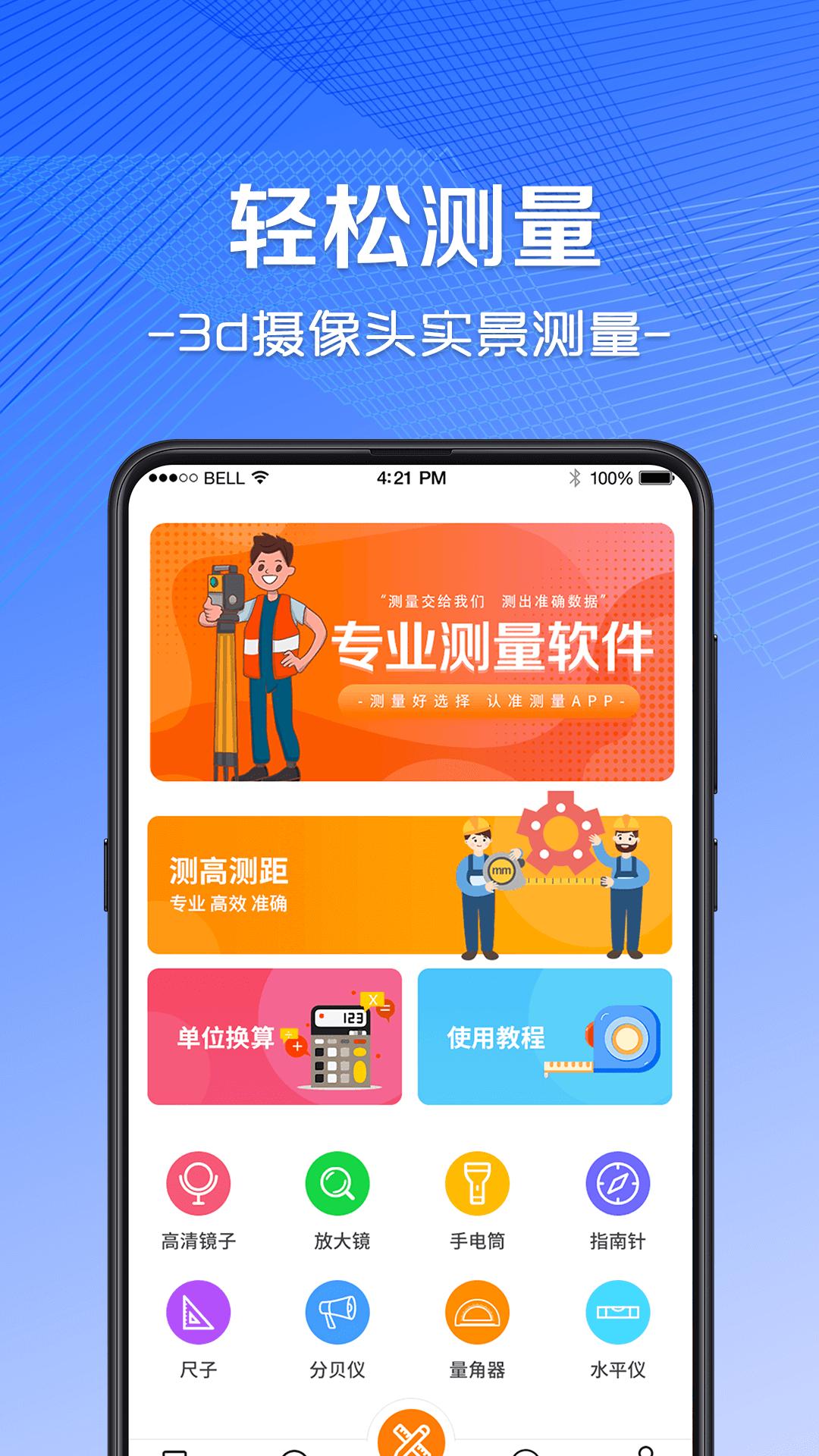 测量工具箱,集成了距离测量,高度测量,水平测量,角度测量,指南针,分贝仪,挂画校准工具。
