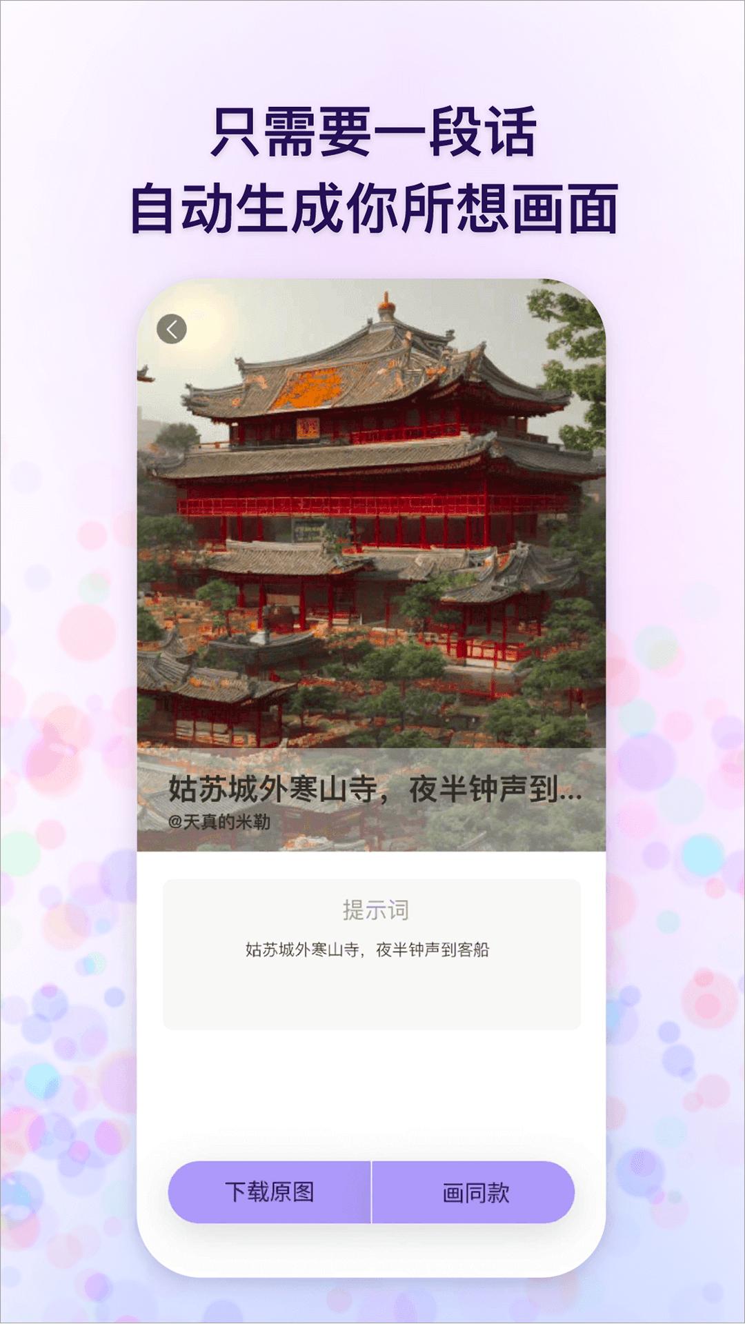 追影app下载是一款由惠州市芳钦贸易有限公司推出的手机绘画工具软件,软件内拥有非常强大的AI辅助功能,可以帮助用户快速完成各种梦境虚构画面,只需一句话输入即可快速生成用户想象中的画面。