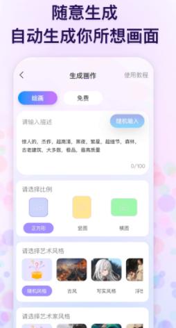 1.这款软件进行AI绘画都是非常的方便,只需输入关键词就可以绘画;