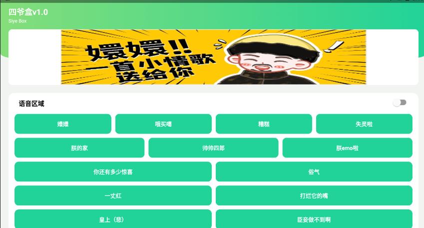 四爷盒APP是一款专为喜欢四大爷的小伙伴准备的优质语盒子,在这里发现超多丁真语音,点击即可轻松使用,非常有趣,还有超多的网络热梗,喜欢的朋友可以来下载体验。