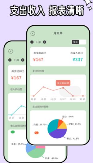 1、快速记账:轻轻一拉即可记账,边消费边记账;