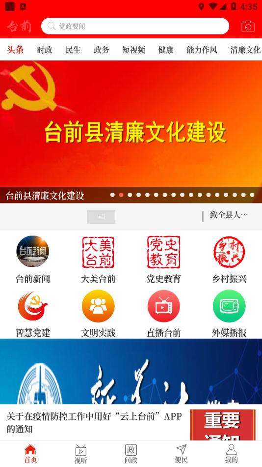 云上台前app是专为台前县制作的融媒体移动应用,软件拥有新闻,视听,问政,便民等等功能板块,是引导及服务台前县的掌上好帮手。