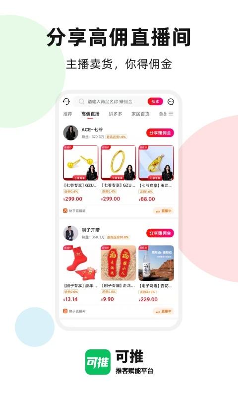 可推是国内首款短视频导购分销平台,与拼多多、淘宝、京东等主流电商平台合作,可推免费提供海量短视频与商品以及聚合最热门带货直播间,你可以通过分享短视频或者直播间获得返佣。
