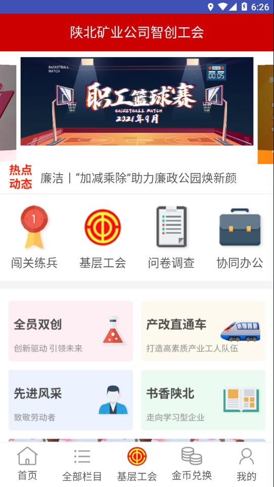 智创工建app是专为陕北矿业制作的工会服务平台,平台拥有闯关练兵,基层工会,问卷调查,协同办公,金币兑换等等丰富功能,需要的朋友欢迎前来下载使用。