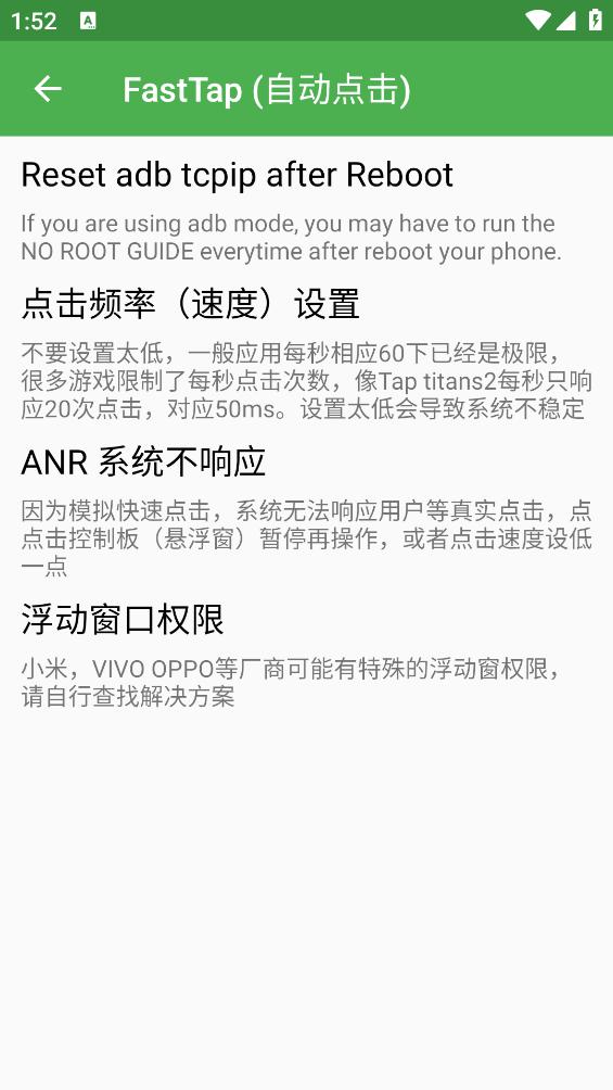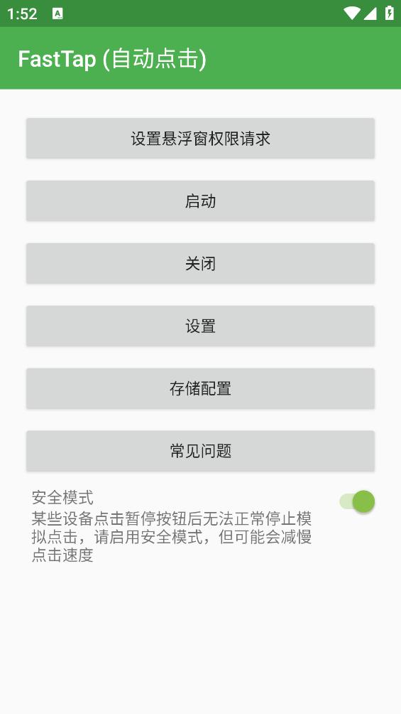 FastTap自动点击器是一款简洁好用的小工具应用,界面超级的简洁而且操作以及设置等都很简单,无任何的广告且免费使用的,例如一个IDLE类型的游戏需要你疯狂点击屏幕,哇,真的不能想象,操作起来多类,这款应用可以让你高效简洁的操作,安卓7.0以上的设备才可以使用,有常见问题解答,自己慢慢尝试吧。