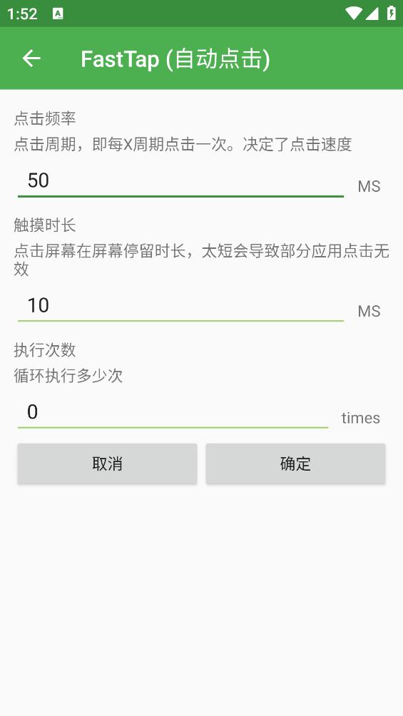 FastTap(自动点击)app是一款非常好用的手机连点小工具。用户可以通过软件随时在线进行手机连点,可以自由设置点击次数和时间,非常的方便,喜欢的用户快来下载体验吧。