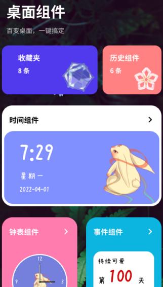 简便小组件APP是款资源丰富的手机主题桌面小组件助手,涵盖了丰富的组件风格,选择自己喜欢的风格设置使用哦,打造专属且独一无二的手机桌面,还能自定义设置桌面的照片哦,各种功能服务都有,在线一键体验,都是免费提供的,让你体验更多的桌面风格。