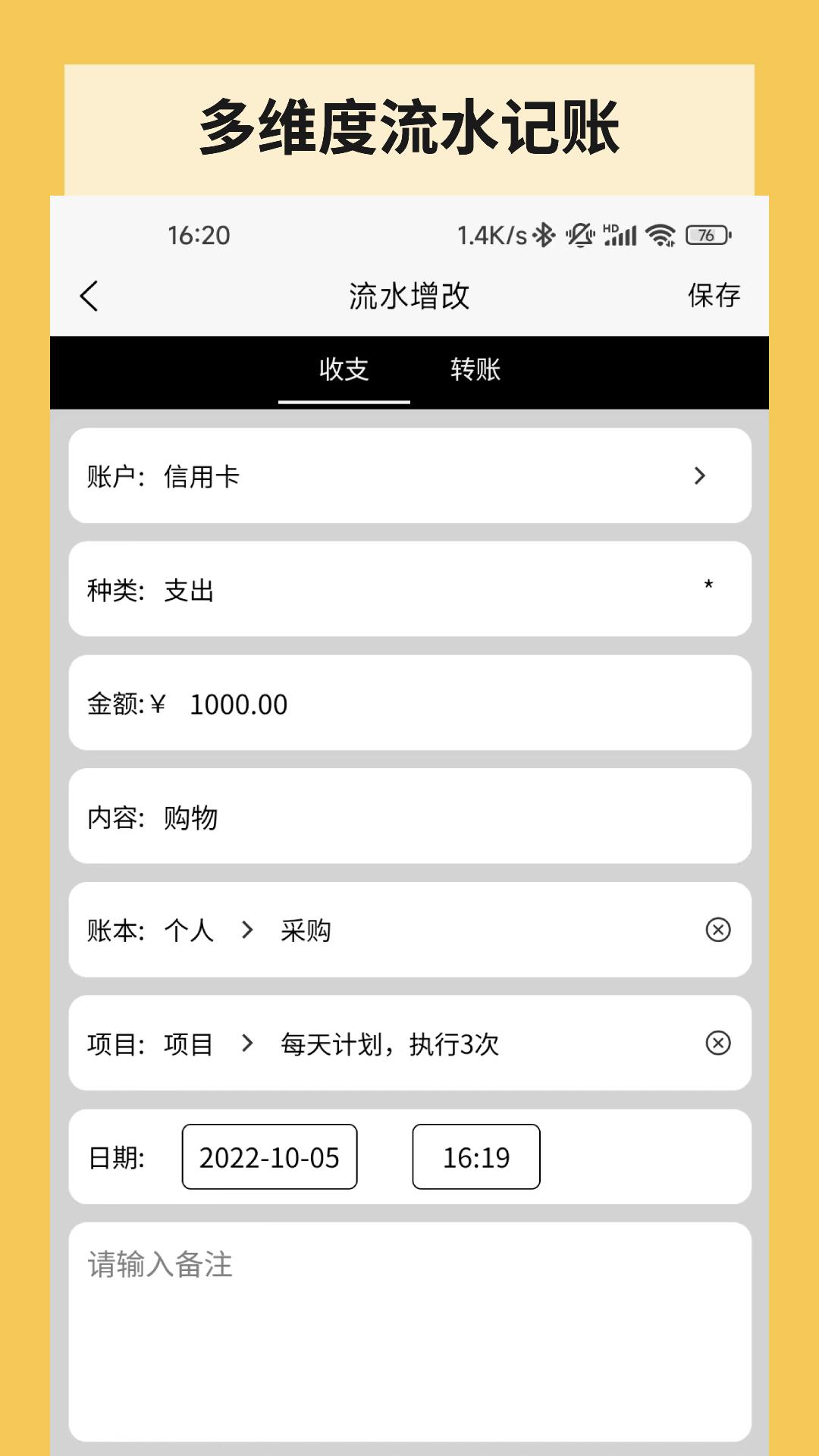 1.同时为广大用户提供了随时解决各种记账问题的难题,更好的快速进行记账和实现。