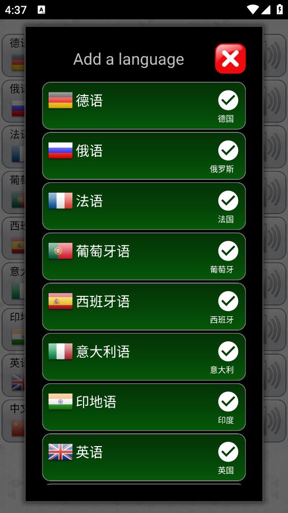 这款多语言翻译器非常强大,包含语音教学,涵盖所有的国家.欢迎下载体验!