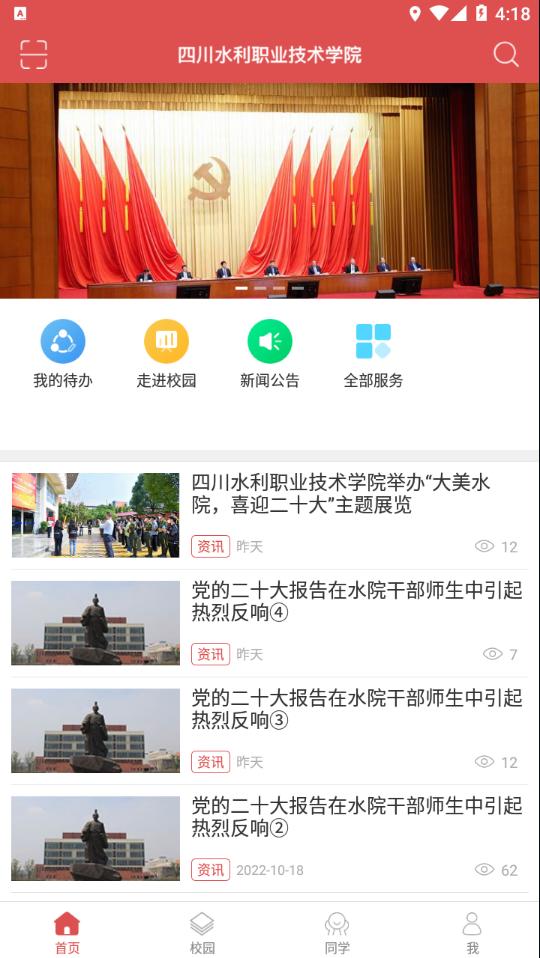 “智慧水院”是四川水利职业技术学院打造的智慧校园综合服务平台,平台深度结合了学校通知公告、日常教学管理业务,为师生提供各类的生活及学习的一站式服务。
