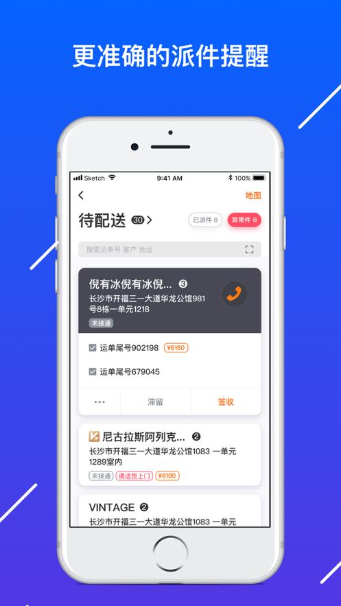 小件员通过它可以无缝共享众配宝平台信息,轻松在手机上实现地图导航、路径规划、联系买家、短信模板、实时签收、异常反馈、运单搜索,轨迹查询等功能,而管理者则能轻松实时监控配送的各个环节。
