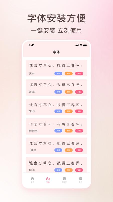 1、你可以轻松的选择感兴趣的字体更换,能够轻松美化你的手机字体。