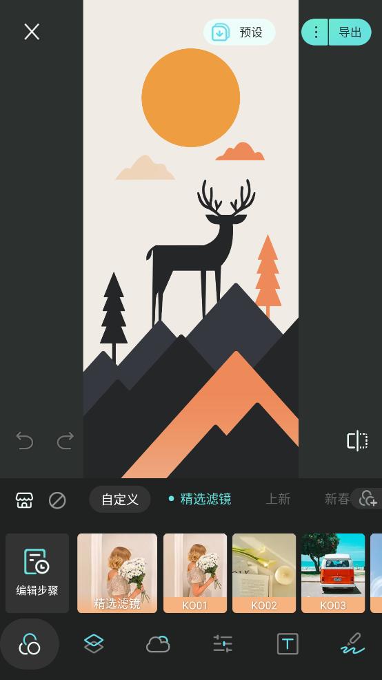 美食,奶油灰,青橙色调,粉色马卡龙,文艺小清新,赛博朋克等风格。现在还能导入和导出自定义预设,分享你的创意。