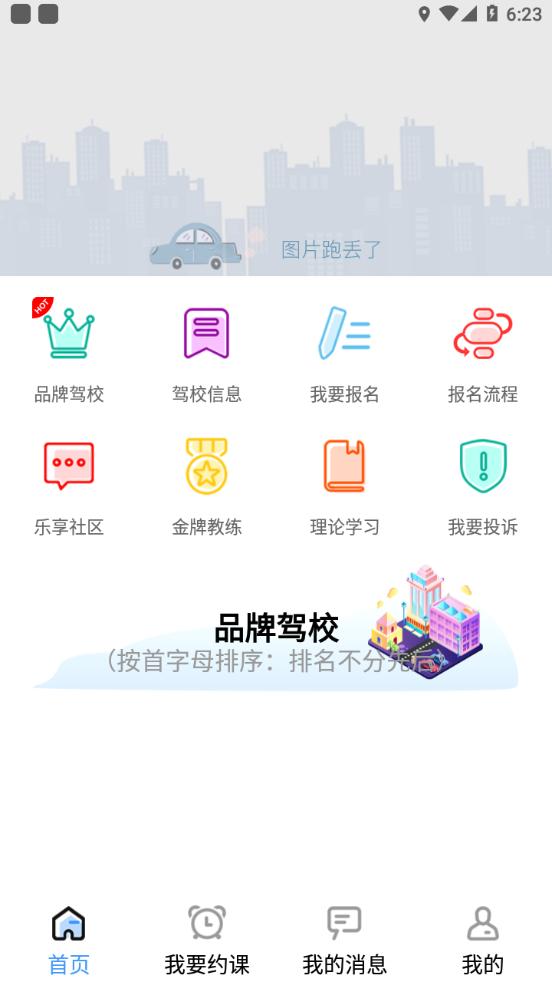 乐享学驾学员版app是一款学车软件,软件拥有驾校信息,我要报名,理论学习,我要约课等等丰富功能,需要的朋友欢迎前来下载使用。