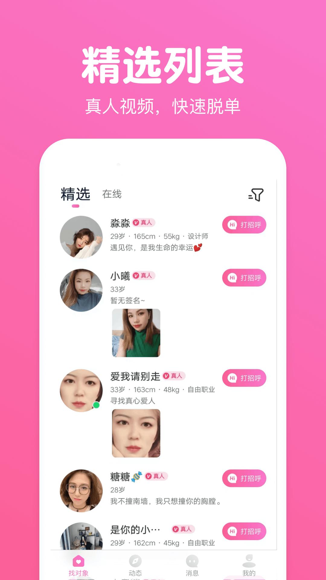 【真人认证】系统+人工双重审核,高颜值、高质量人群的约会聚集地,让你遇见最真实的另一半。