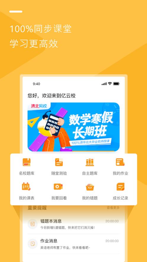 亿云校app下载是一款教育学习助手,软件拥有课堂回看,题库练习,随身错题本等等丰富功能,可以帮助学生更好的学习提升成绩,需要的朋友欢迎前来下载使用。