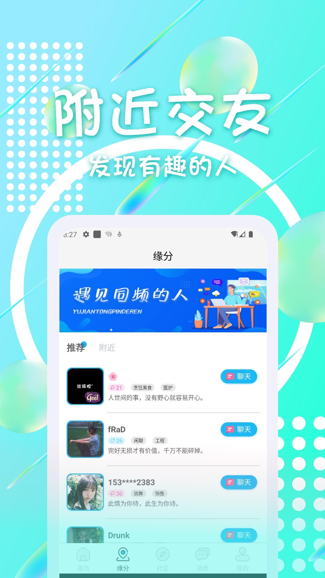 2、附近交友,发现有趣的人