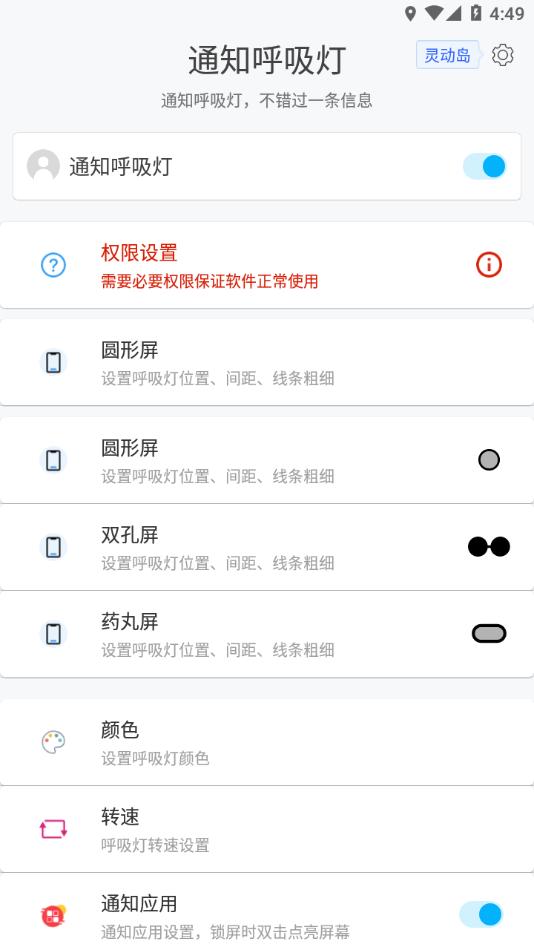 通知呼吸灯,一款可以让异型屏实现应用来通知通过呼吸灯提醒。